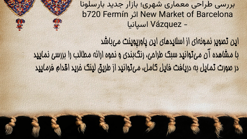 پاورپوینت کامل بررسی طراحی معماری شهری؛ بازار جدید بارسلونا New Market of Barcelona اثر b720 Fermín Vázquez – اسپانیا