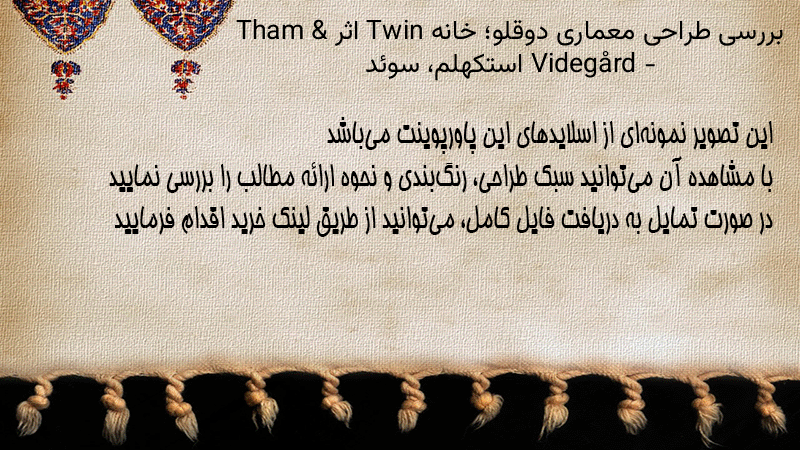 پاورپوینت کامل بررسی طراحی معماری دوقلو؛ خانه Twin اثر Tham & Videgård – استکهلم، سوئد