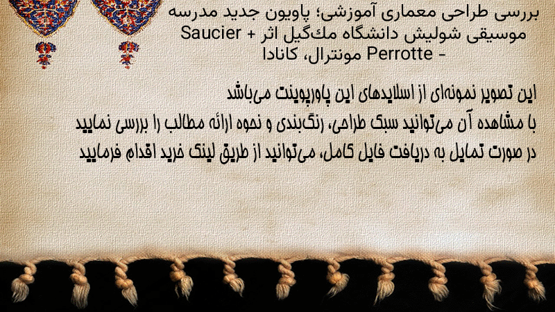 پاورپوینت کامل بررسی طراحی معماری آموزشی؛ پاویون جدید مدرسه موسیقی شولیش دانشگاه مکگیل اثر Saucier + Perrotte – مونترال، کانادا