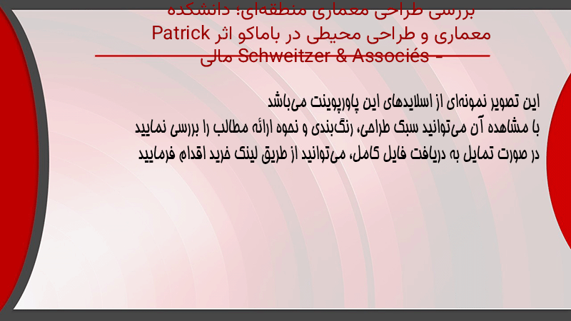 پاورپوینت کامل بررسی طراحی معماری منطقهای؛ دانشکده معماری و طراحی محیطی در باماکو اثر Patrick Schweitzer & Associés – مالی
