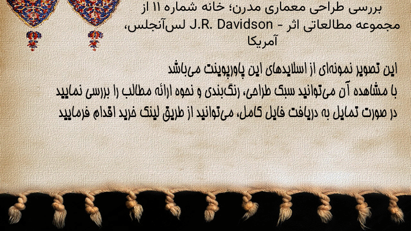 پاورپوینت کامل بررسی طراحی معماری مدرن؛ خانه شماره ۱۱ از مجموعه مطالعاتی اثر J.R. Davidson – لسآنجلس، آمریکا