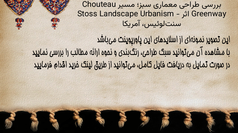 پاورپوینت کامل بررسی طراحی معماری سبز؛ مسیر Chouteau Greenway اثر Stoss Landscape Urbanism – سنتلوئیس، آمریکا