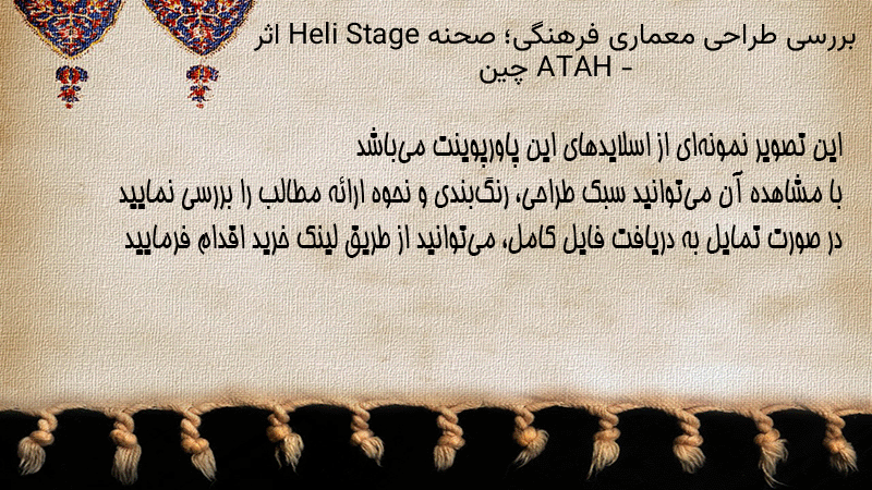 پاورپوینت کامل بررسی طراحی معماری فرهنگی؛ صحنه Heli Stage اثر ATAH – چین
