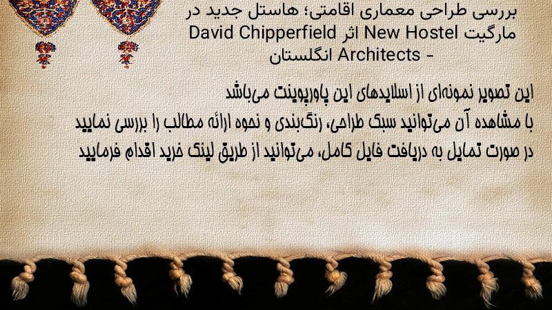 پاورپوینت کامل بررسی طراحی معماری اقامتی؛ هاستل جدید در مارگیت New Hostel اثر David Chipperfield Architects – انگلستان