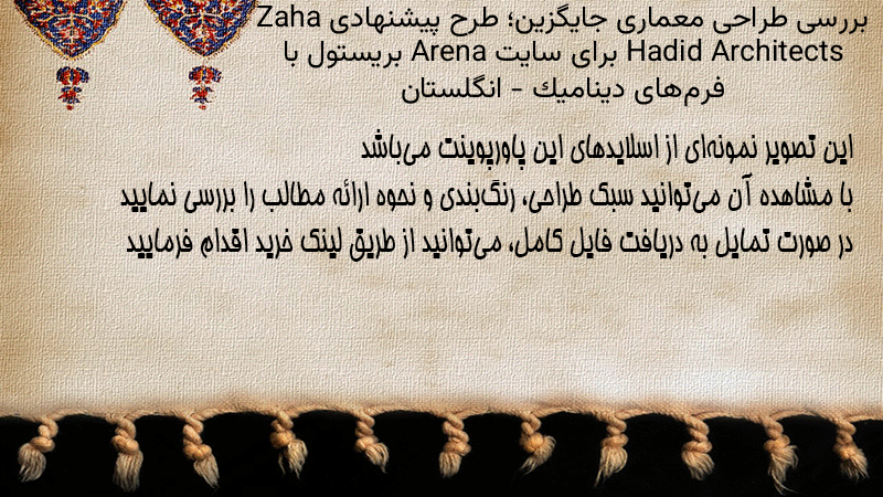 پاورپوینت کامل بررسی طراحی معماری جایگزین؛ طرح پیشنهادی Zaha Hadid Architects برای سایت Arena بریستول با فرمهای دینامیک – انگلستان
