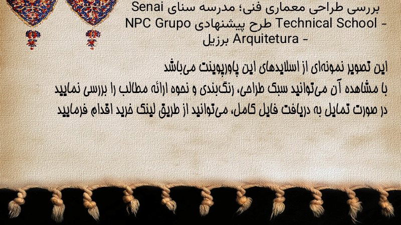 پاورپوینت کامل بررسی طراحی معماری فنی؛ مدرسه سنای Senai Technical School – طرح پیشنهادی NPC Grupo Arquitetura – برزیل