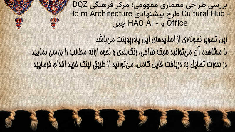 پاورپوینت کامل بررسی طراحی معماری مفهومی؛ مرکز فرهنگی DQZ Cultural Hub – طرح پیشنهادی Holm Architecture Office و HAO AI – چین
