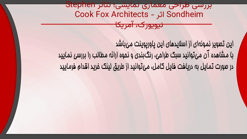 پاورپوینت کامل بررسی طراحی معماری نمایشی؛ تئاتر Stephen Sondheim اثر Cook Fox Architects – نیویورک، آمریکا