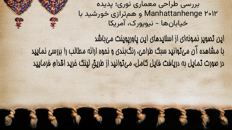 پاورپوینت کامل بررسی طراحی معماری نوری؛ پدیده Manhattanhenge ۲۰۱۲ و همترازی خورشید با خیابانها – نیویورک، آمریکا