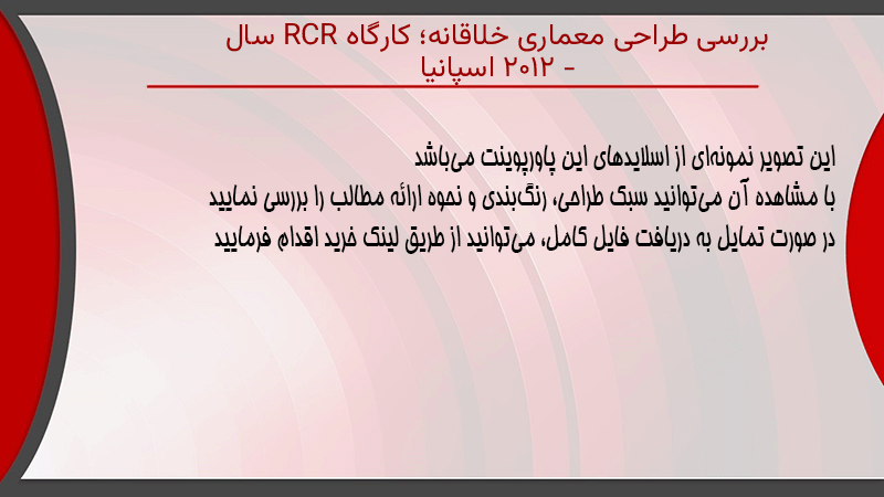 پاورپوینت کامل بررسی طراحی معماری خلاقانه؛ کارگاه RCR سال ۲۰۱۲ – اسپانیا