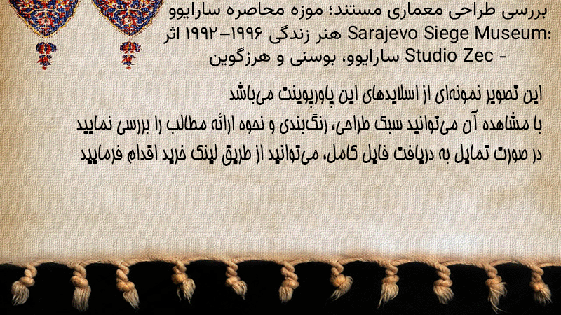 پاورپوینت کامل بررسی طراحی معماری مستند؛ موزه محاصره سارایوو Sarajevo Siege Museum: هنر زندگی ۱۹۹۲–۱۹۹۶ اثر Studio Zec – سارایوو، بوسنی و هرزگوین