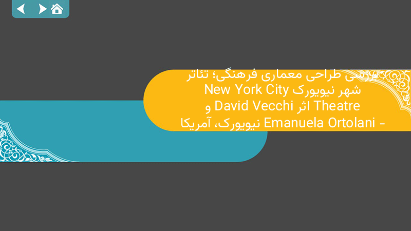 پاورپوینت کامل بررسی طراحی معماری فرهنگی؛ تئاتر شهر نیویورک New York City Theatre اثر David Vecchi و Emanuela Ortolani – نیویورک، آمریکا