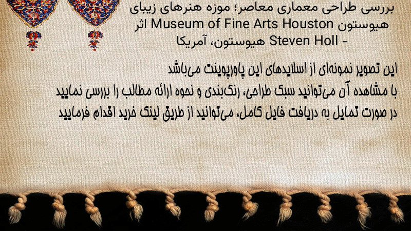پاورپوینت کامل بررسی طراحی معماری معاصر؛ موزه هنرهای زیبای هیوستون Museum of Fine Arts Houston اثر Steven Holl – هیوستون، آمریکا