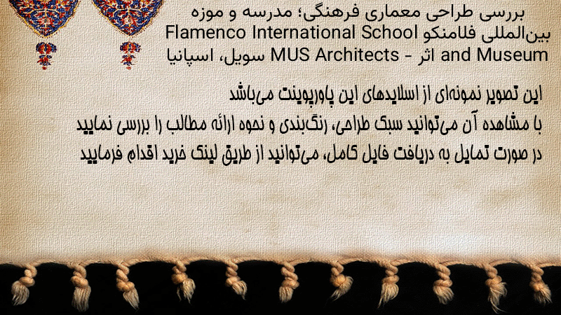 پاورپوینت کامل بررسی طراحی معماری فرهنگی؛ مدرسه و موزه بینالمللی فلامنکو Flamenco International School and Museum اثر MUS Architects – سویل، اسپانیا