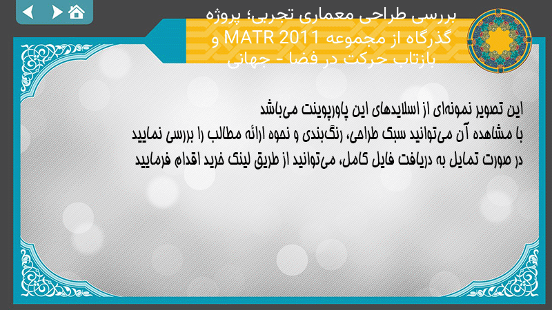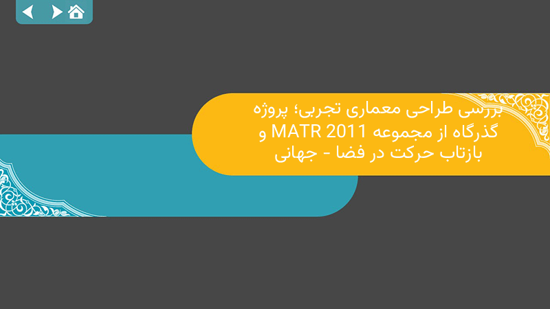 پاورپوینت کامل بررسی طراحی معماری تجربی؛ پروژه گذرگاه از مجموعه MATR 2011 و بازتاب حرکت در فضا – جهانی