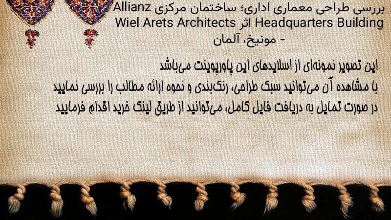 پاورپوینت کامل بررسی طراحی معماری اداری؛ ساختمان مرکزی Allianz Headquarters Building اثر Wiel Arets Architects – مونیخ، آلمان