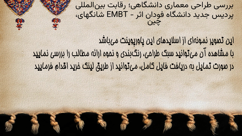 پاورپوینت کامل بررسی طراحی معماری دانشگاهی؛ رقابت بینالمللی پردیس جدید دانشگاه فودان اثر EMBT – شانگهای، چین