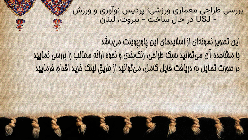 پاورپوینت کامل بررسی طراحی معماری ورزشی؛ پردیس نوآوری و ورزش USJ – در حال ساخت – بیروت، لبنان