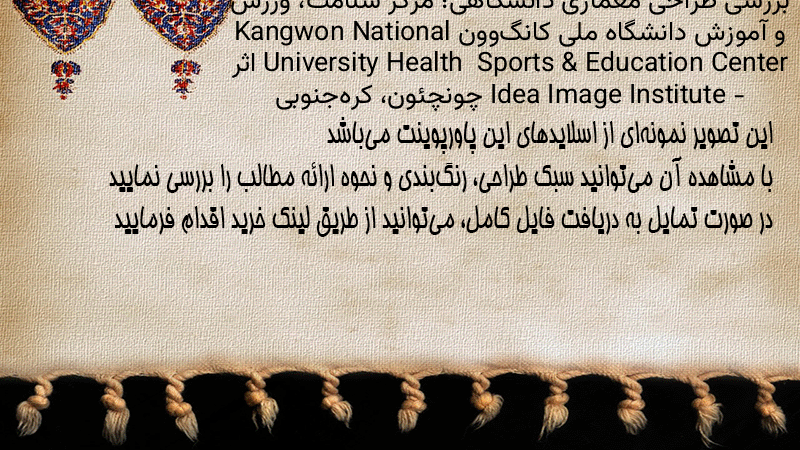 پاورپوینت کامل بررسی طراحی معماری دانشگاهی؛ مرکز سلامت، ورزش و آموزش دانشگاه ملی کانگوون Kangwon National University Health Sports & Education Center اثر Idea Image Institute – چونچئون، کرهجنوبی