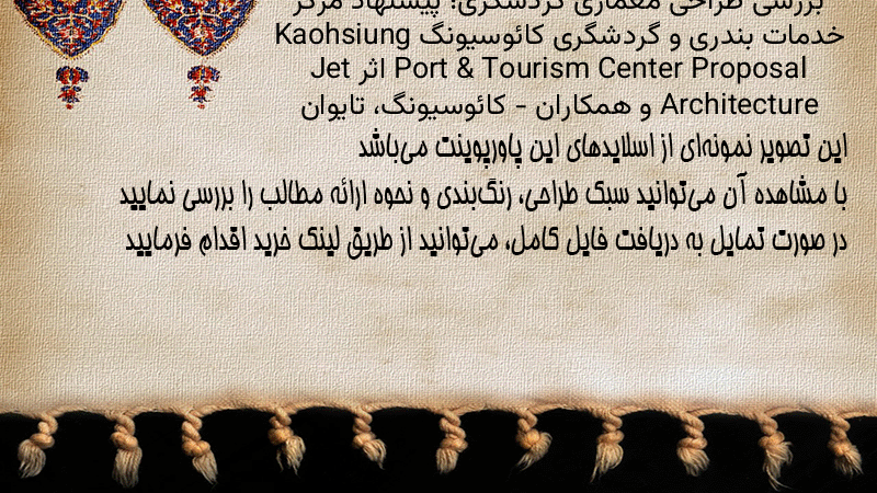 پاورپوینت کامل بررسی طراحی معماری گردشگری؛ پیشنهاد مرکز خدمات بندری و گردشگری کائوسیونگ Kaohsiung Port & Tourism Center Proposal اثر Jet Architecture و همکاران – کائوسیونگ، تایوان