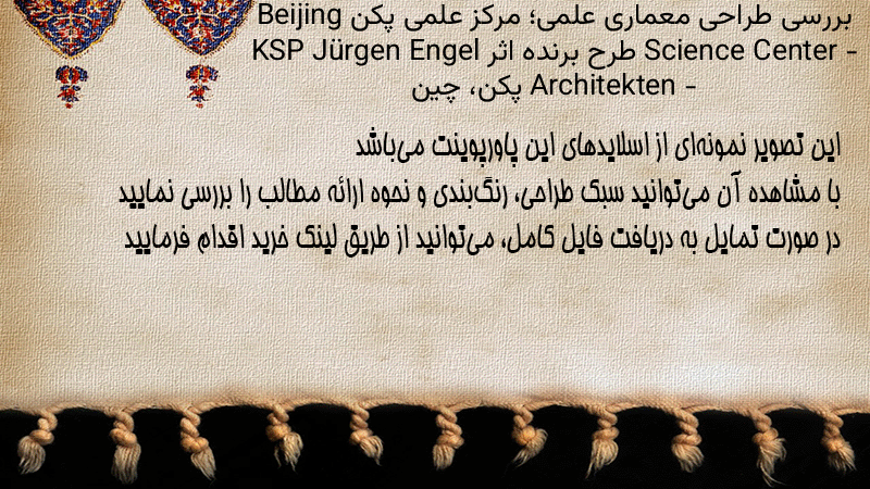 پاورپوینت کامل بررسی طراحی معماری علمی؛ مرکز علمی پکن Beijing Science Center – طرح برنده اثر KSP Jürgen Engel Architekten – پکن، چین