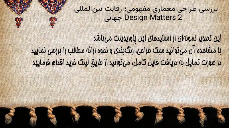 پاورپوینت کامل بررسی طراحی معماری مفهومی؛ رقابت بینالمللی Design Matters 2 – جهانی