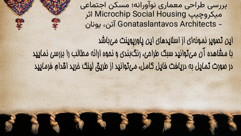 پاورپوینت کامل بررسی طراحی معماری نوآورانه؛ مسکن اجتماعی میکروچیپ Microchip Social Housing اثر Gonataslantavos Architects – آتن، یونان