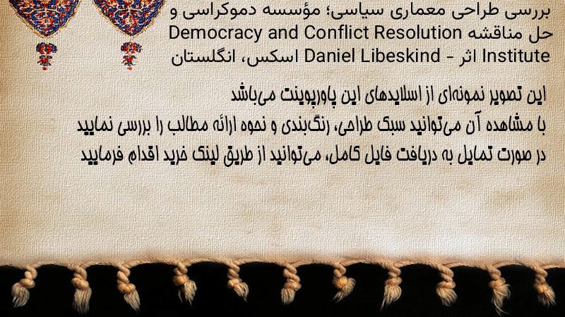 پاورپوینت کامل بررسی طراحی معماری سیاسی؛ مؤسسه دموکراسی و حل مناقشه Democracy and Conflict Resolution Institute اثر Daniel Libeskind – اسکس، انگلستان