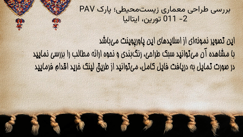 پاورپوینت کامل بررسی طراحی معماری زیستمحیطی؛ پارک PAV 2011 – تورین، ایتالیا