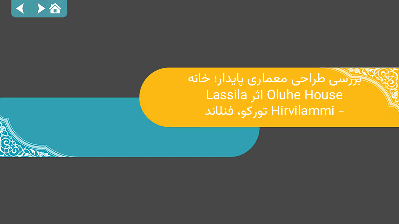 پاورپوینت کامل بررسی طراحی معماری پایدار؛ خانه Oluhe House اثر Lassila Hirvilammi – تورکو، فنلاند