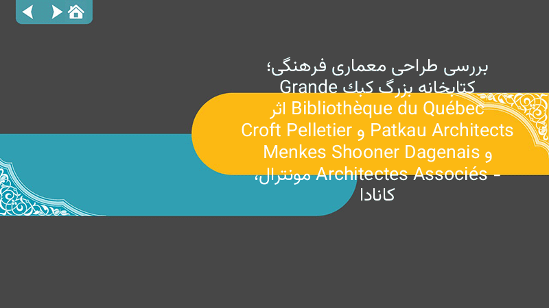 پاورپوینت کامل بررسی طراحی معماری فرهنگی؛ کتابخانه بزرگ کبک Grande Bibliothèque du Québec اثر Patkau Architects و Croft Pelletier و Menkes Shooner Dagenais Architectes Associés – مونترال، کانادا
