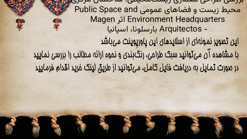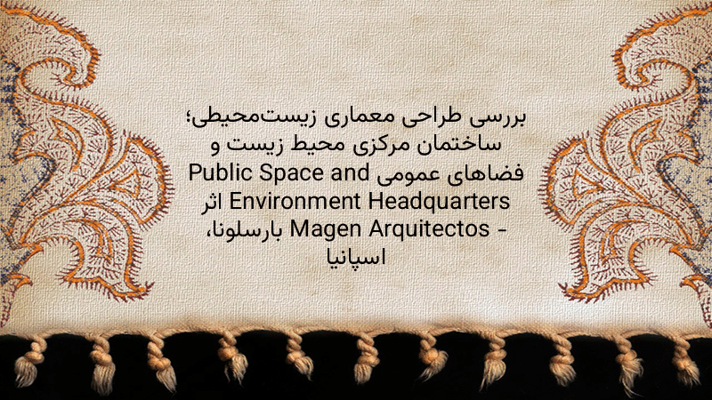 پاورپوینت کامل بررسی طراحی معماری زیستمحیطی؛ ساختمان مرکزی محیط زیست و فضاهای عمومی Public Space and Environment Headquarters اثر Magen Arquitectos – بارسلونا، اسپانیا