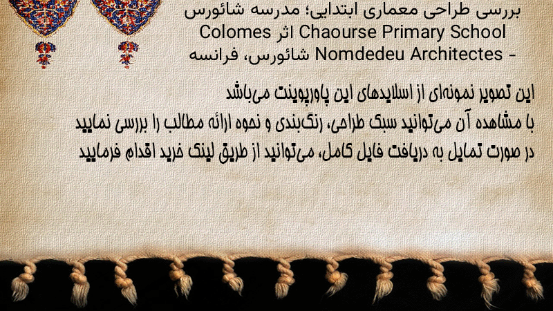 پاورپوینت کامل بررسی طراحی معماری ابتدایی؛ مدرسه شائورس Chaourse Primary School اثر Colomes Nomdedeu Architectes – شائورس، فرانسه
