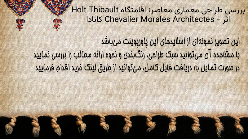 پاورپوینت کامل بررسی طراحی معماری معاصر؛ اقامتگاه Holt Thibault اثر Chevalier Morales Architectes – کانادا