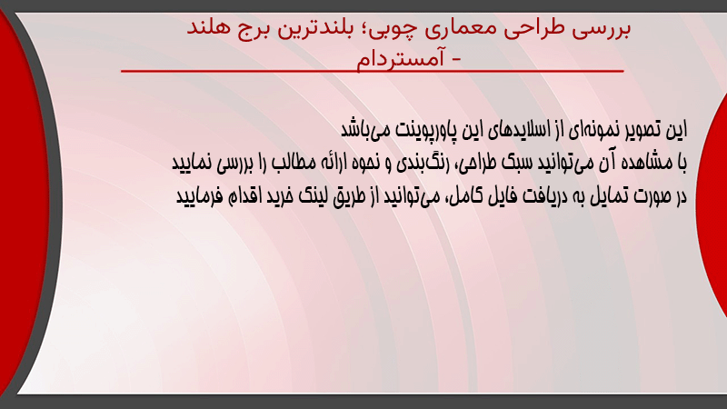 پاورپوینت کامل بررسی طراحی معماری چوبی؛ بلندترین برج هلند – آمستردام