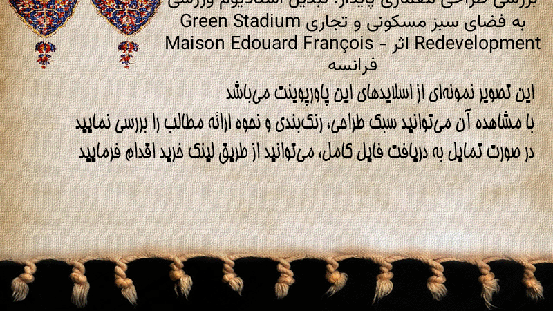 پاورپوینت کامل بررسی طراحی معماری پایدار؛ تبدیل استادیوم ورزشی به فضای سبز مسکونی و تجاری Green Stadium Redevelopment اثر Maison Edouard François – فرانسه