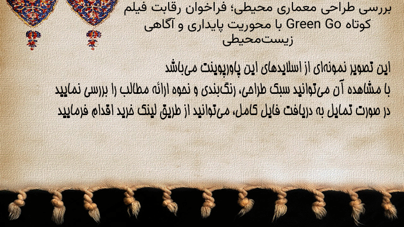 پاورپوینت کامل بررسی طراحی معماری محیطی؛ فراخوان رقابت فیلم کوتاه Green Go با محوریت پایداری و آگاهی زیستمحیطی