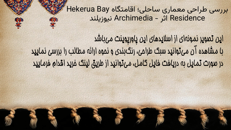 پاورپوینت کامل بررسی طراحی معماری ساحلی؛ اقامتگاه Hekerua Bay Residence اثر Archimedia – نیوزیلند