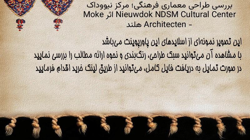 پاورپوینت کامل بررسی طراحی معماری فرهنگی؛ مرکز نیووداک Nieuwdok NDSM Cultural Center اثر Moke Architecten – هلند