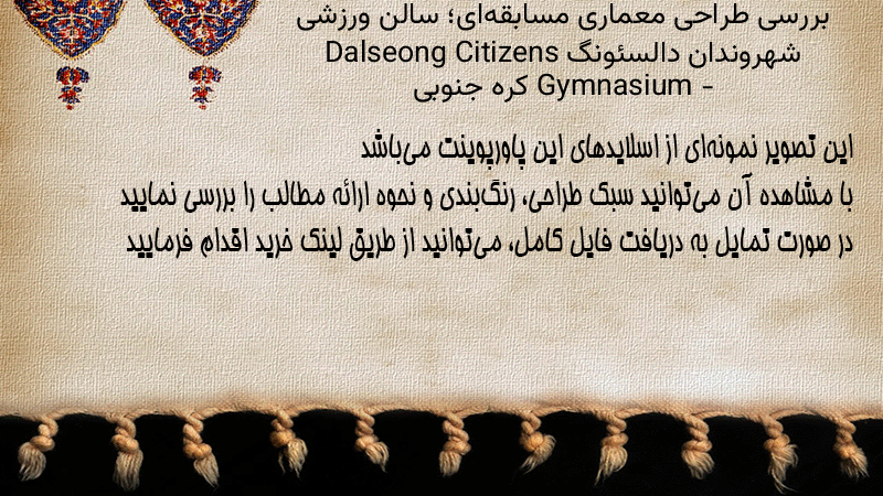 پاورپوینت کامل بررسی طراحی معماری مسابقهای؛ سالن ورزشی شهروندان دالسئونگ Dalseong Citizens Gymnasium – کره جنوبی
