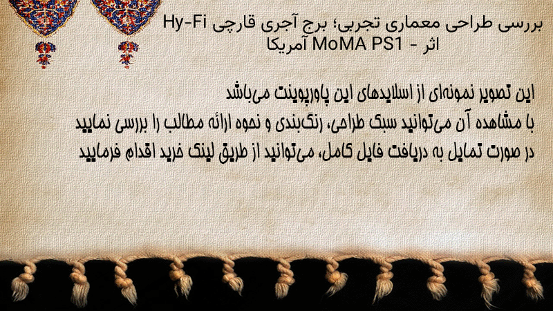 پاورپوینت کامل بررسی طراحی معماری تجربی؛ برج آجری قارچی Hy-Fi اثر MoMA PS1 – آمریکا