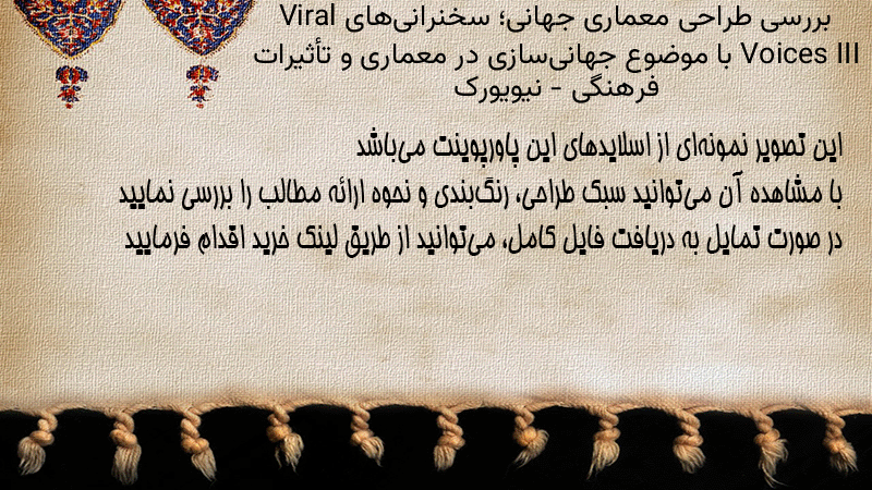 پاورپوینت کامل بررسی طراحی معماری جهانی؛ سخنرانیهای Viral Voices III با موضوع جهانیسازی در معماری و تأثیرات فرهنگی – نیویورک