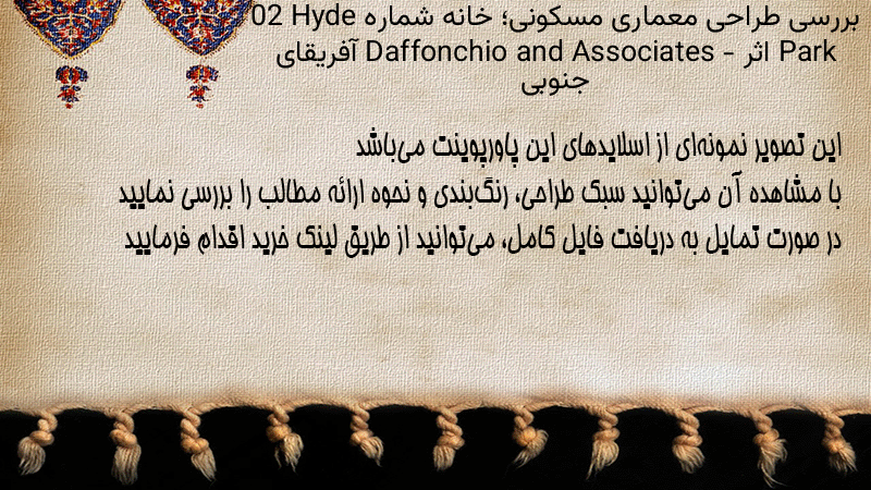 پاورپوینت کامل بررسی طراحی معماری مسکونی؛ خانه شماره ۰۲ Hyde Park اثر Daffonchio and Associates – آفریقای جنوبی