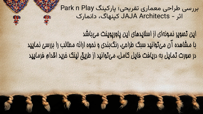 پاورپوینت کامل بررسی طراحی معماری تفریحی؛ پارکینگ Park n Play اثر JAJA Architects – کپنهاگ، دانمارک