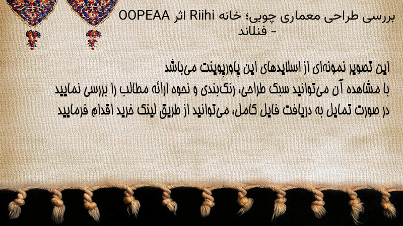 پاورپوینت کامل بررسی طراحی معماری چوبی؛ خانه Riihi اثر OOPEAA – فنلاند