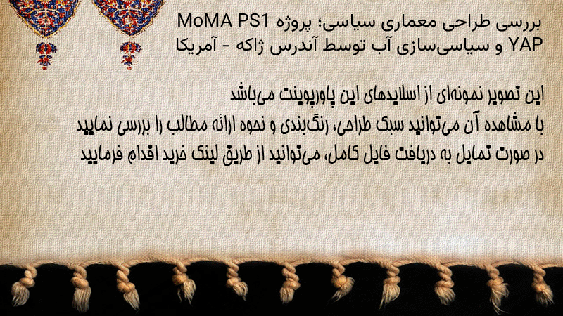 پاورپوینت کامل بررسی طراحی معماری سیاسی؛ پروژه MoMA PS1 YAP و سیاسیسازی آب توسط آندرس ژاکه – آمریکا