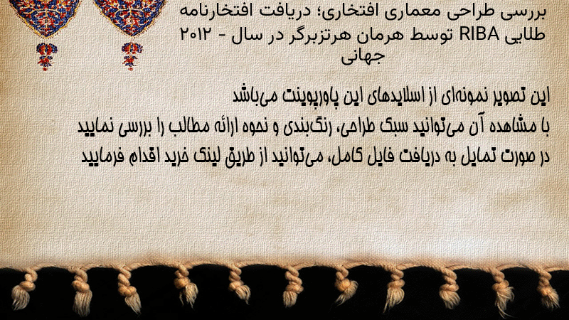 پاورپوینت کامل بررسی طراحی معماری افتخاری؛ دریافت افتخارنامه طلایی RIBA توسط هرمان هرتزبرگر در سال ۲۰۱۲ – جهانی