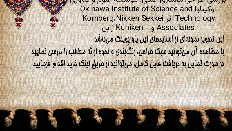 پاورپوینت کامل بررسی طراحی معماری علمی؛ مؤسسه علوم و فناوری اوکیناوا Okinawa Institute of Science and Technology اثر Nikken Sekkei، Kornberg Associates و Kuniken – ژاپن