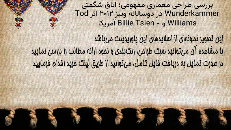 پاورپوینت کامل بررسی طراحی معماری مفهومی؛ اتاق شگفتی Wunderkammer در دوسالانه ونیز ۲۰۱۲ اثر Tod Williams و Billie Tsien – آمریکا