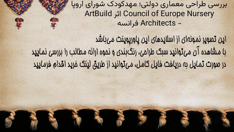 پاورپوینت کامل بررسی طراحی معماری دولتی؛ مهدکودک شورای اروپا Council of Europe Nursery اثر ArtBuild Architects – فرانسه